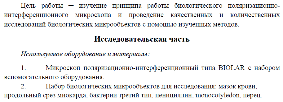 Для студентов МГТУ им. Н.Э.Баумана по предмету Узлы и элементы медицинской техникиОтчет по лабораторной работе №1 "Исследование характеристик биологических микрообъектов с помощью поляризационно-интерференционного микроскопа» Отчет по лабораторной работе №1 "Исследование характеристик биологических микрообъектов с помощью поляризационно-интерференционного микроскопа»
