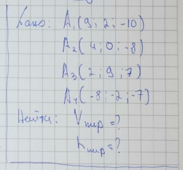найти высоту и объем пирамиды по векторам А1, А2, А3, А4