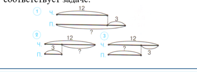 Прочитай задачу. За рабочую смену часовщик отремонтировал 12 будильников, а его помощник - на 3 будильника меньше. Сколько будильников отремонтировал помощник? Выбери схему, которая соответствует задаче.