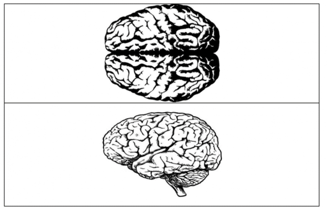 1. Посмотрите на немую карту мозга и отметьте на ней основные структурные элементы, морфо-функциональные блоки мозга.
