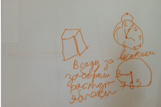 Клинический случай № 2. Пациент К. поступил в стационар с жалобами на повышение давления, плохое самочувствие. При объективном обследовании врачом-неврологом парезов не наблюдается, речь сохранна. Со слов родственников, с момента начала заболевания изменилось поведение пациента: стал чрезмерно разговорчивым, суетливым, много и непристойно шутит, ведет себя «дурашливо», многое забывает. В процессе нейропсихологического обследования крайне отвлекаем, много шутит, отвлекается на посторонние темы. Ответы как на простые, так и на сложные вопросы дает быстро, не задумываясь, преимущественно неправильно. Дезориентирован во времени и месте. К своему состоянию некритичен, утверждает, что абсолютно здоров. Общий эмоциональный фон неадекватно высокий. Образец выполнения пациентом продуктивного задания приведен на рисунке 2.