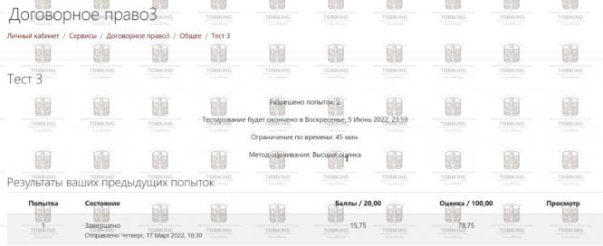 Тест 3 Договорное право Витте 2, 4, 6 семестр, балл 78,75%