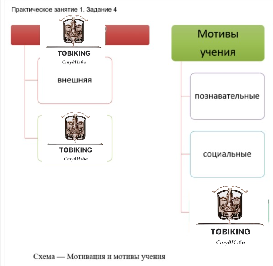 Вставьте в пустые блоки схемы наименования видов мотивов и мотивации. Обратите внимание, что задание содержит фальшответы (неправильные виды мотивов и мотивации).