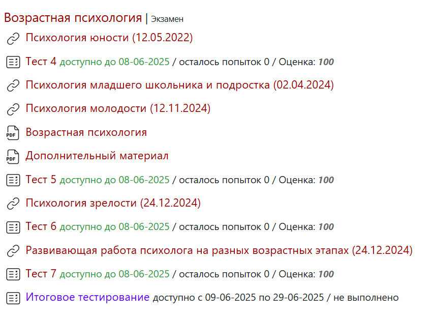 Ответы к экзамену Тесты 4-7: Возрастная психология (Тесты 4-7)