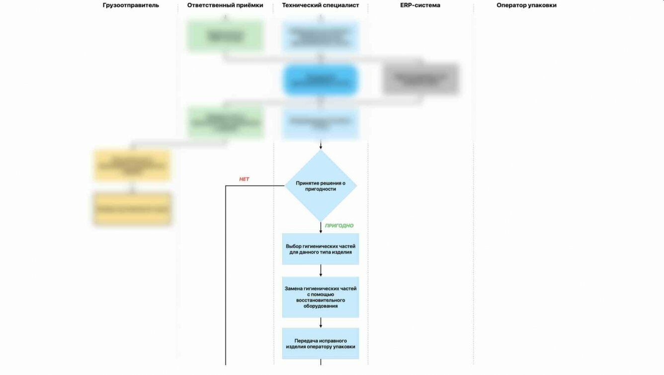Задание: получение изделия, распаковка, проверка на функциональность, принятие решение о пригодности, замена гигиенических частей, упаковка или утилизация.