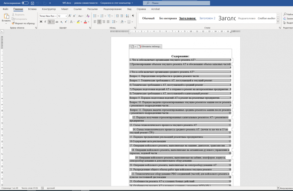 Ответы к зачету по следующему списку вопросов, все расписано качественно. ВСЕ 57 Вопросов. Для ВУЦ. Вопросы: Содержание: 1. Что в себя включает организация текущего ремонта АТ?. 4 2.Прогнозирование объемов текущего ремонта АТ и обоснование объема запасных частей. 4 3.Что в себя включает организация среднего ремонта АТ?. 5 Вопрос 4. Определение потребности в среднем ремонте части. 6 Вопрос 5. Технические требования к АТ, поступающей в текущий ремонт. 7 6) Технические требования к АТ, поступающей в средний ремонт. 8 7) Порядок подготовки изделий АТ к отправке в ремонт на авторемонтные предприятия 8 8) Технические требования к АТ, поступающей в капитальный ремонт.