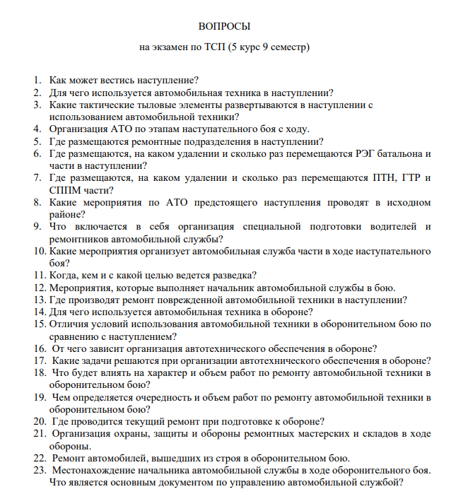 Для студентов МГТУ им. Н.Э.Баумана по предмету Военная кафедраОтветы на экзамен по ВТП и ТСПОтветы на экзамен по ВТП и ТСП