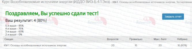Ответы к заданиям КМ-1: Курс Возобновляемые источники энергии - КМ-1. Основы возобновляемых источников энергии. Тестирование