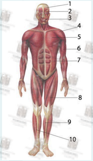 Мышечная система (мускулатура) — система органов человека, образованная скелетными мышцами, которые, сокращаясь, приводят в движение кости скелета, благодаря которой организмом осуществляется движение во всех его проявлениях. Впишите названия мышц, соответствующих номеру их расположения на картинке, регистр значения не имеет