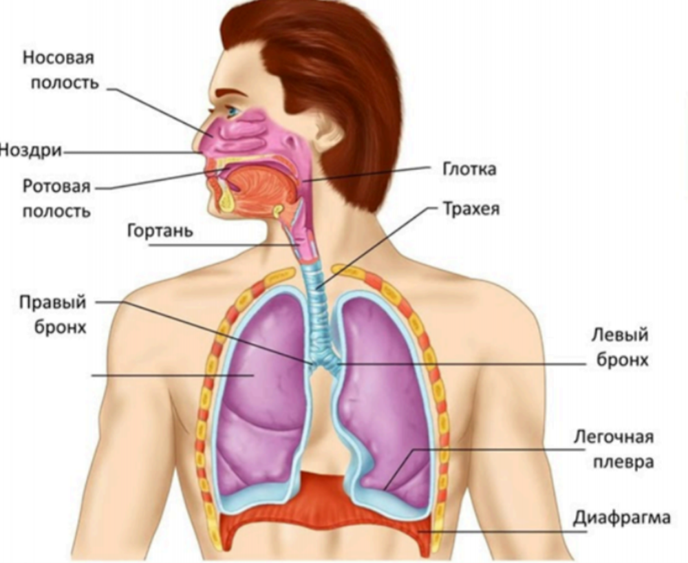 Рассмотрите топографию дыхательной системы и установите соответствие органов дыхания, которые относятся к верхним дыхательным путям и нижним дыхательным путям. Переместите в таблицу названия органов дыхательной системы из того перечня, который указан на рисунке. Дыхательные путиСостав дыхательных путей Верхние дыхательные пути Нижние дыхательные пути носовая полость ноздри ротовая полость глотка гортань трахея легочная плевра левый бронх диафрагма правый бронх  .