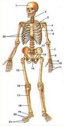 Задание 1. Рассмотрите рисунок «Скелет человека» и назовите все кости, которые обозначены цифрами: