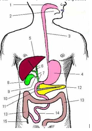 Используя рисунок № 1 «Строение пищеварительной системы», обозначьте органы, входящие в пищеварительную систему.