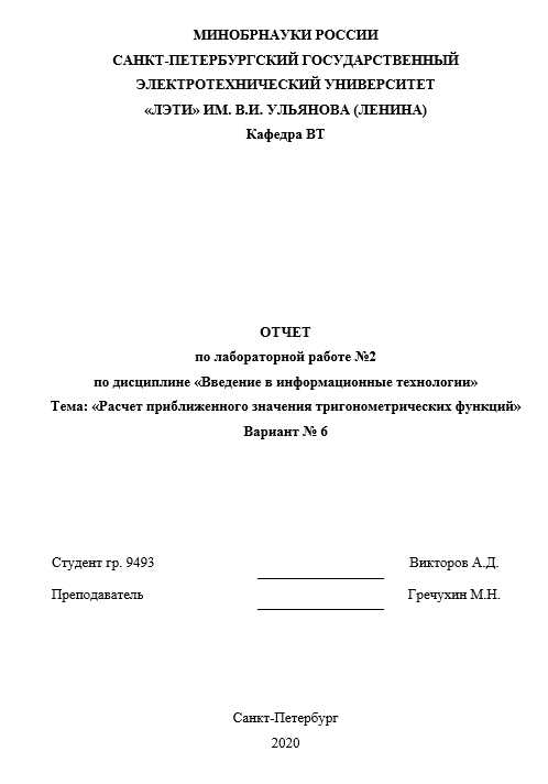 Для студентов СПбГЭТУ им. Ульянова (Ленина) по предмету Введение в информационные технологииРасчет приближенного значения тригонометрических функцийРасчет приближенного значения тригонометрических функций