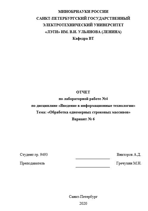 Для студентов СПбГЭТУ им. Ульянова (Ленина) по предмету Введение в информационные технологииОбработка одномерных строковых массивовОбработка одномерных строковых массивов