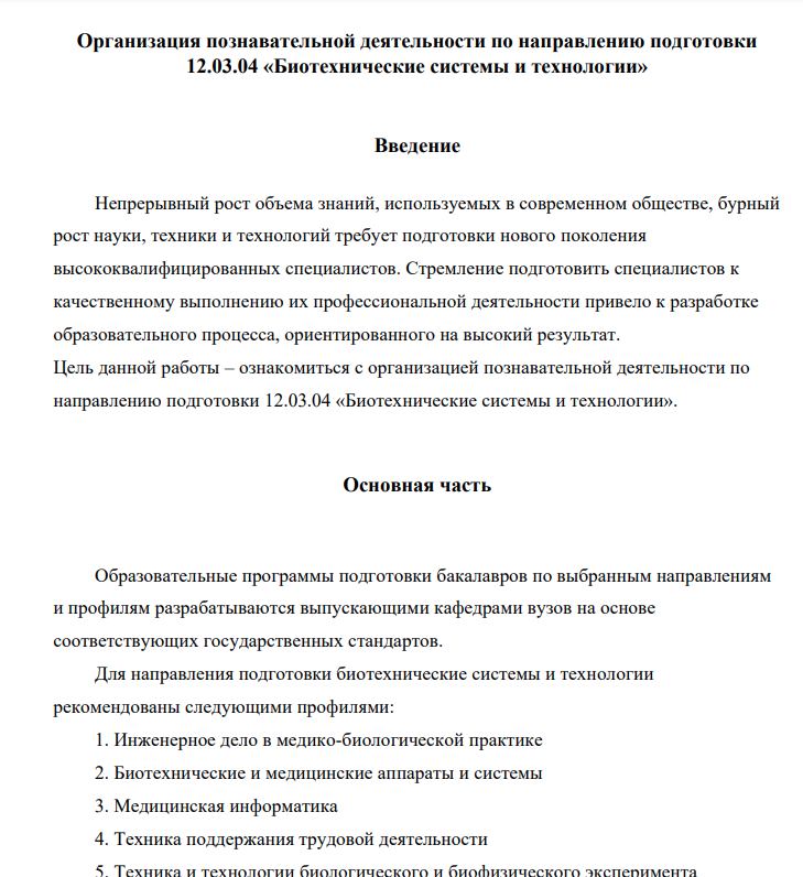 Реферат: Ведение в направление подготовки 12.03.04 «Биотехнические системы и технологии»