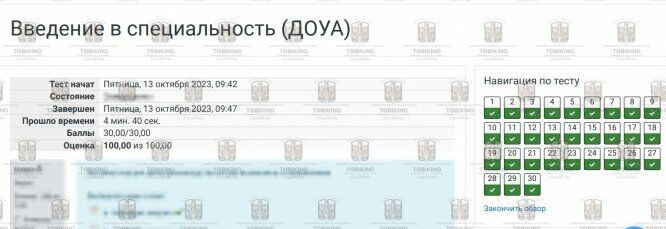 Тест Введение в специальность (ДОУА) (тест5), 30 вопросов, полностью правильные