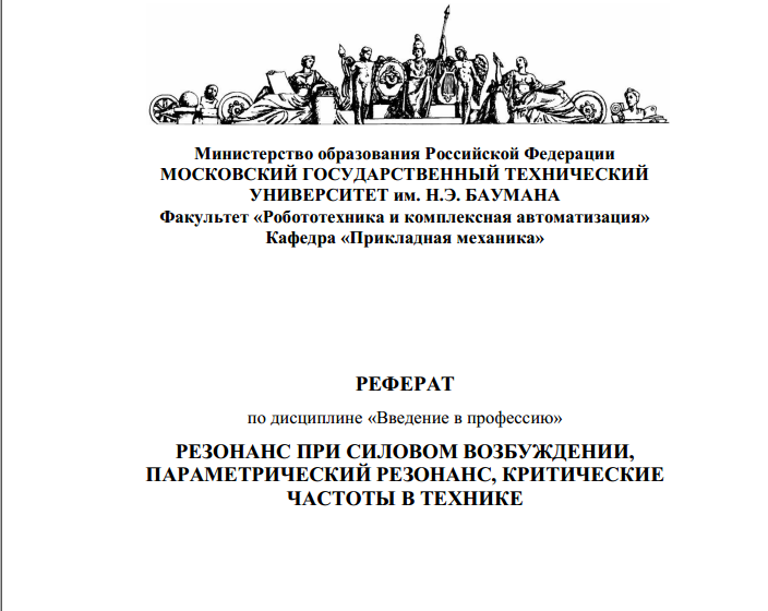 Главная » Учебные материалы » Введение в специальность » Остальные учебные работы » МГТУ им. Н.Э.Баумана » 1 семестр » Резонанс при силовом возбуждении, параметрический резонанс, критические частоты в технике.