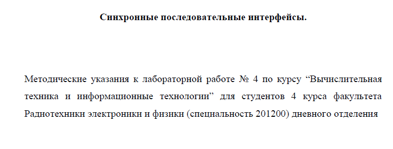 Для студентов НГТУ по предмету Вычислительная техника и информационные технологии (ВТиИТ)Методические указания к лабораторной работе №4 - Синхронные последовательные интерфейсыМетодические указания к лабораторной работе №4 - Синхронные последовательные интерфейсы