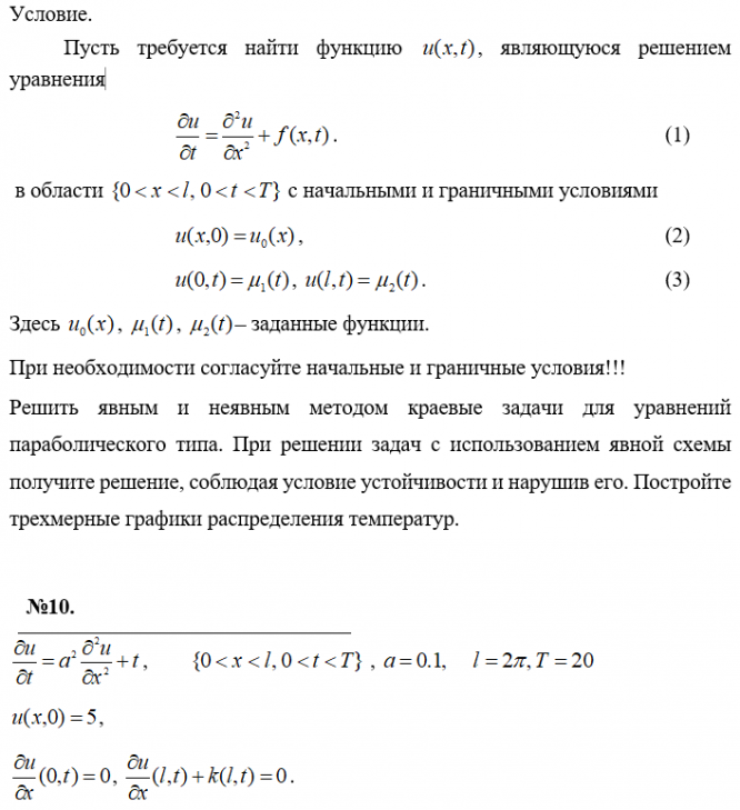 Варианты заданий отличаются лишь начальными и граничными условиями.