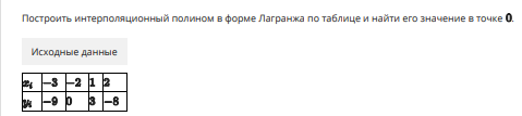 Построить интерполяционный полином в форме Лагранжа по таблице и найти его значение в точке