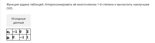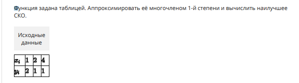Функция задана таблицей. Аппроксимировать её многочленом 1-й степени и вычислить наилучшее СКО.