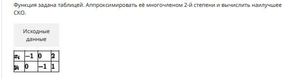 Функция задана таблицей. Аппроксимировать её многочленом 2-й степени и вычислить наилучшее СКО