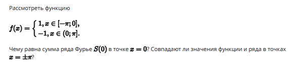 Рассмотреть функцию Чему равна сумма ряда Фурье в точке ? Совпадают ли значения функции и ряда в точках ?