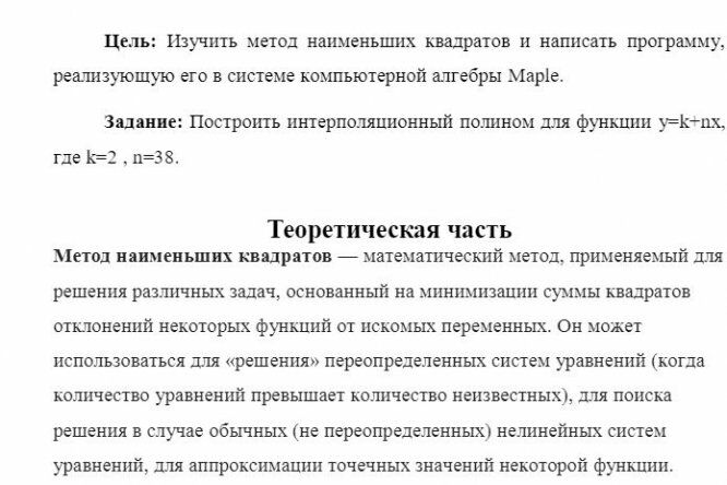 Цель: Изучить метод наименьших квадратов и написать программу, реализующую его в системе компьютерной алгебры Maple.
