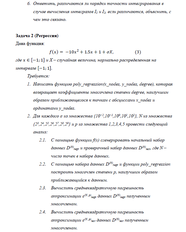 Главная » Учебные материалы » Вычислительная математика » Лабораторные работы » МГТУ им. Н.Э.Баумана » 6 семестр » Отчет по лабораторной работе №2 "Численное интегрирование и полиномиальная регрессия"