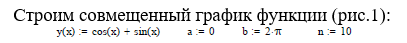 1. На заданном промежутке [a;b] построить совмещенный график функции и ее дискретного аналога, полученного разбиением промежутка на 10 частей;