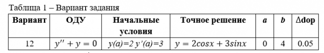 Решить ОДУ второго порядка (таблица 1) на промежутке [a;b], разбив его на 10 интервалов:
