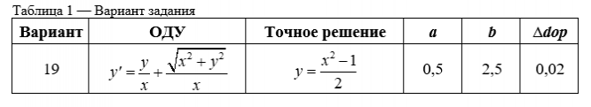 Лабораторная работа 7: Решение ОДУ первого порядка методами Эйлера и Рунге-Кутты вариант 19