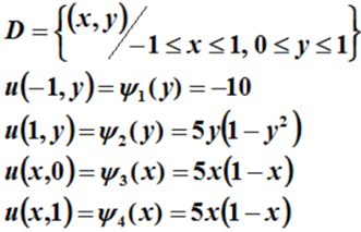 Найти приближенное решение уравнения Лапласа в заданной области с указанными граничными условиями, принять h1 = h2 = 0,1.