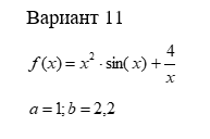 Лабораторная работа 10: Приближенное численное интегрирование вариант 11