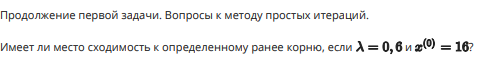 Продолжение первой задачи. Вопросы к методу простых итераций. Имеет ли место сходимость к определенному ранее корню, если