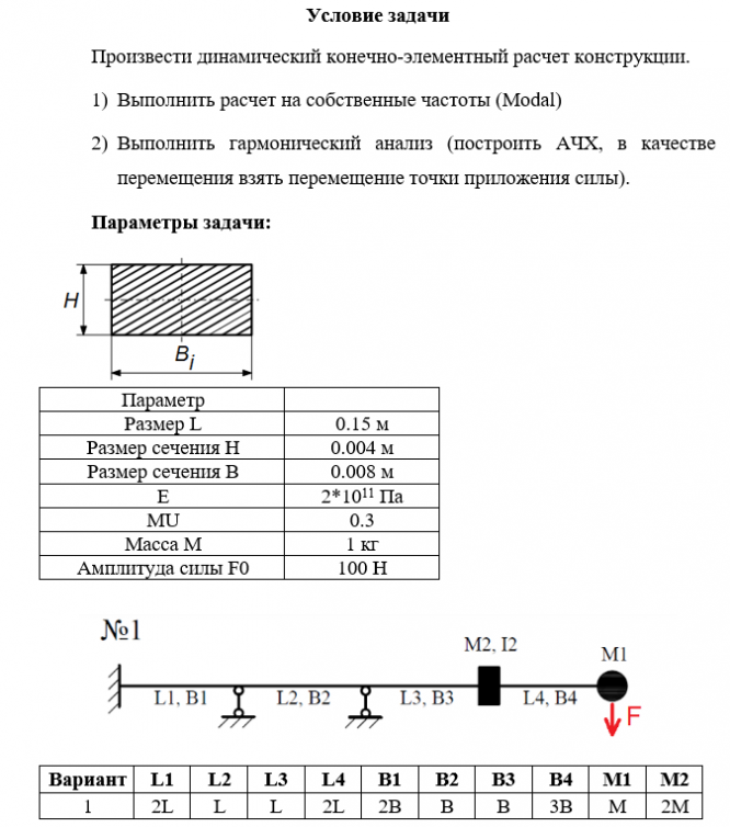 ДЗ 2: Динамический расчет в ANSYS вариант 1