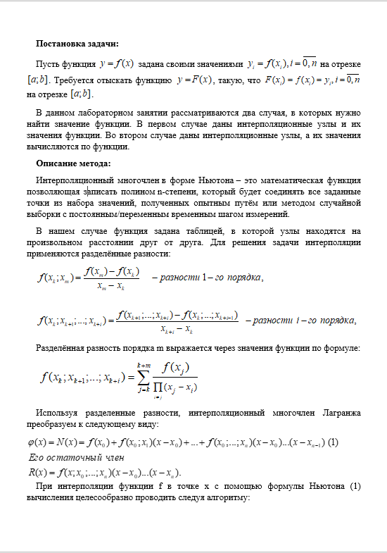В нашем случае функция задана таблицей, в которой узлы находятся на произвольном расстоянии друг от друга. Для решения задачи интерполяции применяются разделённые разности.