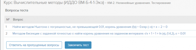 Ответы к контрольной работе КМ-2: Нелинейные уравнения