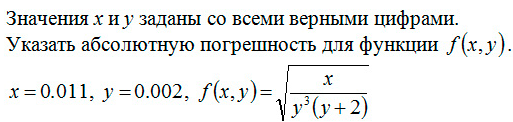 2 Значения x и y заданы со всеми верными цифрами. Указать абсолютную погрешность для функции ƒ(x, y).x = 7.234, y = 0.567, ƒ(x, y) = x/y