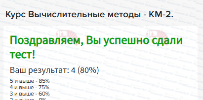 Курс Вычислительные методы - КМ-2. Нелинейные уравнения. Тестирование - 80%