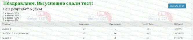 Ответы к заданиям КМ-1: КМ-1. Погрешность функции. Тестирование - 95%