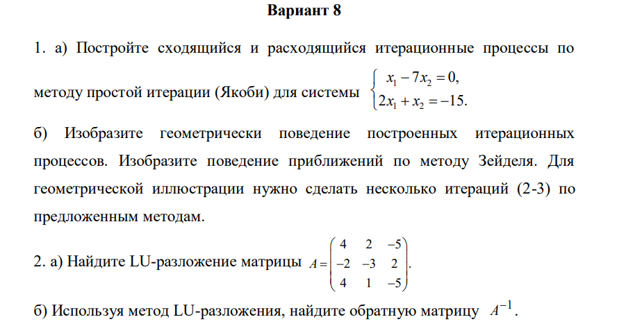 ДЗ КМ-3: КМ-3. Численные методы линейной алгебры. Письменная работа вариант 8