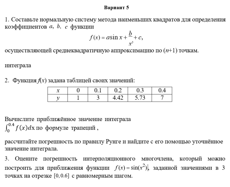ДЗ КМ-4: КМ-4. Приближение функций. Письменная работа вариант 5