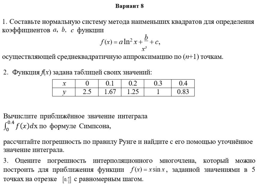 ДЗ КМ-4: КМ-4. Приближение функций. Письменная работа вариант 8