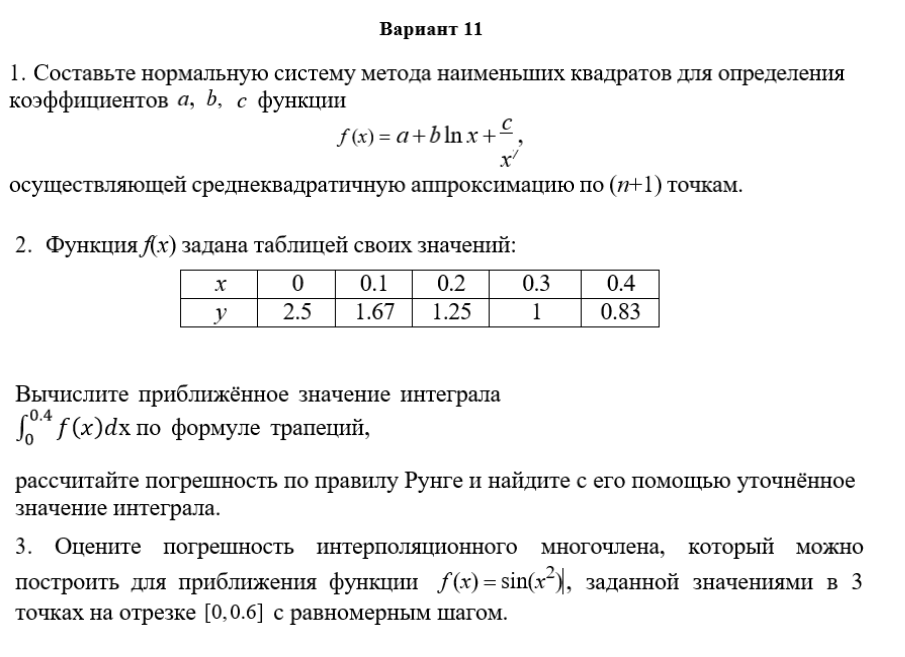 ДЗ КМ-4: КМ-4. Приближение функций. Письменная работа вариант 11