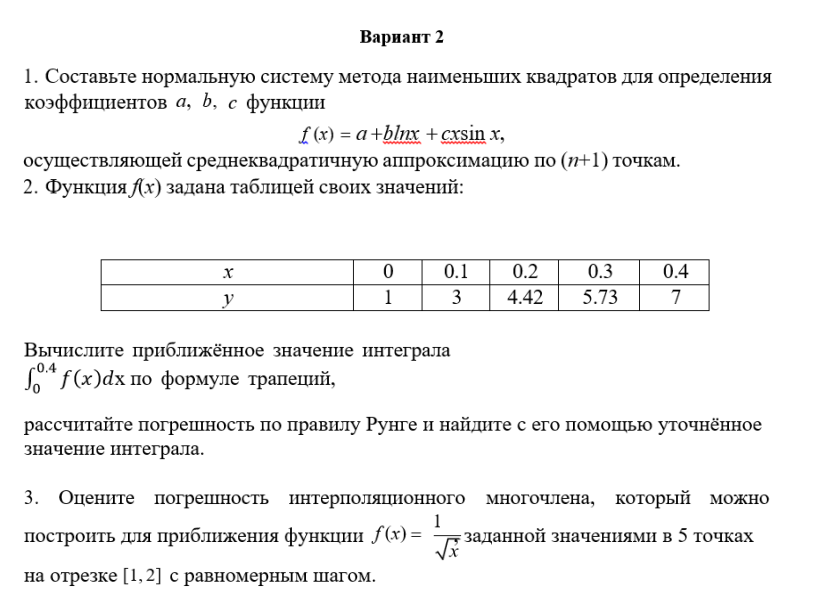 ДЗ КМ-4: КМ-4. Приближение функций. Письменная работа вариант 2