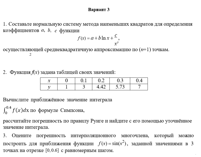 ДЗ КМ-4: КМ-4. Приближение функций. Письменная работа вариант 3