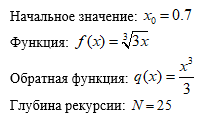 Осуществить рекурсивное вычисление значения заданной функции f(x) и возврат к исходному значению x, используя рекурсивное вычисление обратной функции. Вычислить разность полученного значения и исходной величины x. Определить количество верных цифр в значении, полученном рекурсивным вычислением обратной функции.