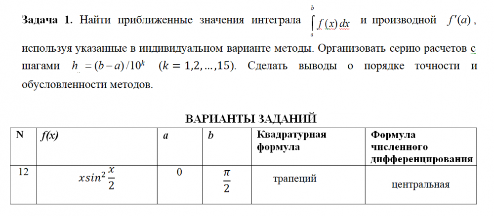 Лабораторная работа 3: Численное интегрирование и дифференцирование вариант 12