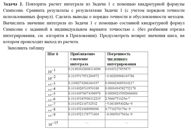 Цель работы. Применить на практике простейшие численные методы вычисления интегралов и производных. Исследовать поведение погрешности методов при измельчении шага.Познакомиться с понятиями порядка точности и обусловленности (плохой/хорошей) задачи и их отражением в расчетах. Вычислить определенный интеграл с заданной точностью.